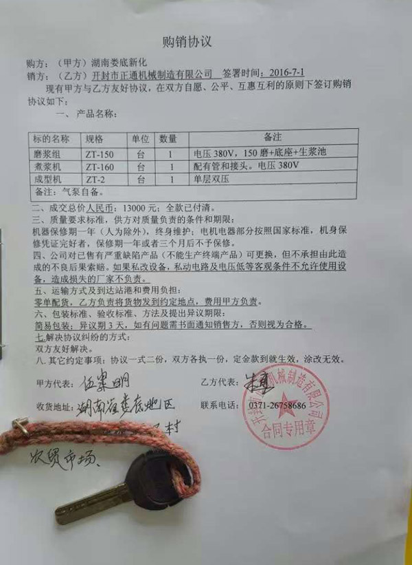 湖南婁底的伍先生在當(dāng)?shù)剞r(nóng)貿(mào)市場(chǎng)看到有現(xiàn)做現(xiàn)賣--彭大順豆腐坊,而且生意很好。經(jīng)過(guò)1月的考察并找個(gè)新農(nóng)貿(mào)市場(chǎng)租下房子,來(lái)廠里直接訂購(gòu)豆腐機(jī)一套。伍先生說(shuō):就沖你們廠的豆腐機(jī)做的味道好,豆腐價(jià)格高生意好做。細(xì)節(jié)決定成敗,味道決定利潤(rùn)。正通機(jī)械歡迎廣大有志青年來(lái)廠參觀考察,也歡迎購(gòu)機(jī)或者加盟聯(lián)合。正通機(jī)械--強(qiáng)強(qiáng)聯(lián)手的工廠,提供支持的后盾。