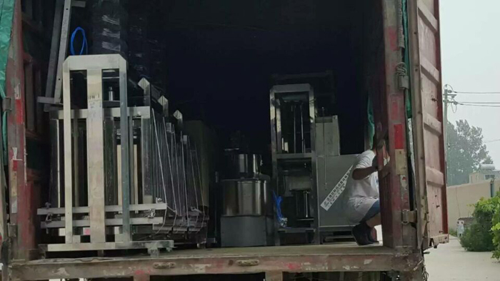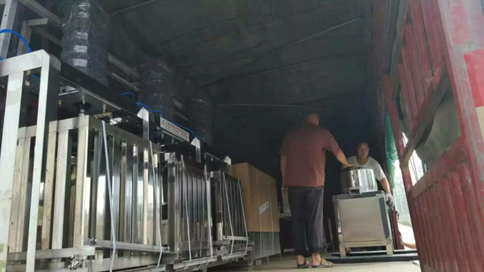 山西大同任先生,你的生產(chǎn)線裝了滿滿6.8米的貨車;請耐心等待。已經(jīng)出發(fā)。訂購產(chǎn)品:自動上豆系統(tǒng)+磨漿系統(tǒng)+全自動煮漿機(jī)+豆腐機(jī)+全自動豆干生產(chǎn)線+鹵制鍋。