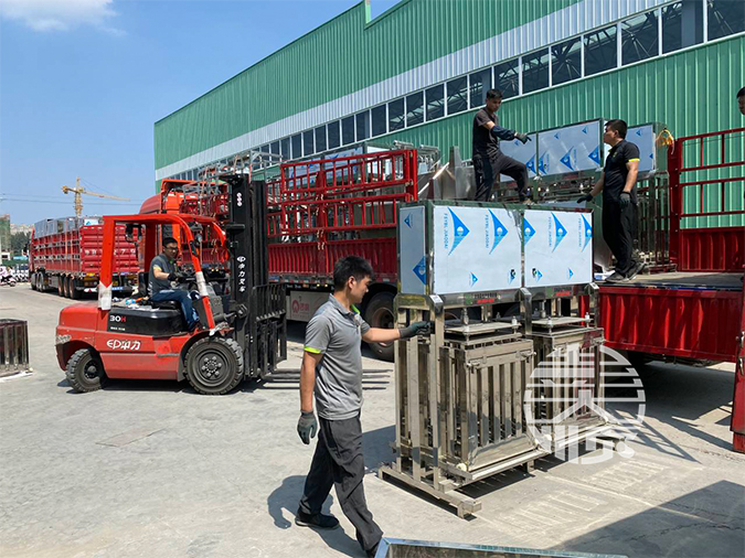 陜西商洛客戶定制的全套干豆腐機(jī)器設(shè)備,彭大順廠家已經(jīng)生產(chǎn)制作完成,現(xiàn)在安排裝車發(fā)貨,裝了滿滿兩大車設(shè)備。